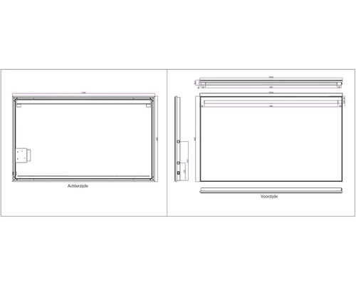 De spiegel heeft 5 mm dik glas en is bekleed met zilverfolie. Daarnaast is de spiegel spatwaterdicht en gemonteerd in een aluminium frame. Door de geïntegreerde transformator kunt u de spiegel direct op het lichtnet (220V) aansluiten.