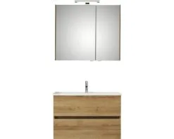 PELIPAL Badkamermeubelset Cavallino Greeploos 75 Cm Incl. Spiegelkast Met Verlichting Riviera Eiken